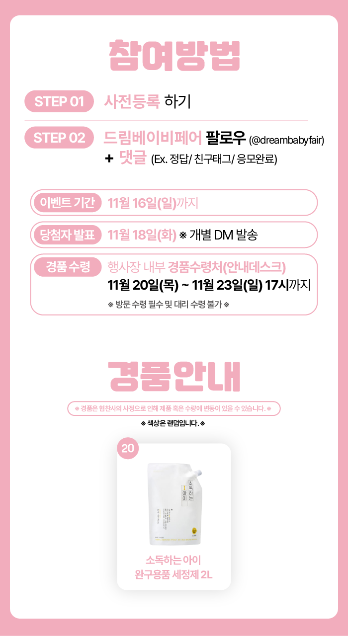 정답은 드림베이비페어 공식 인스타그램 해당 게시물에 작성해 주세용!🩷